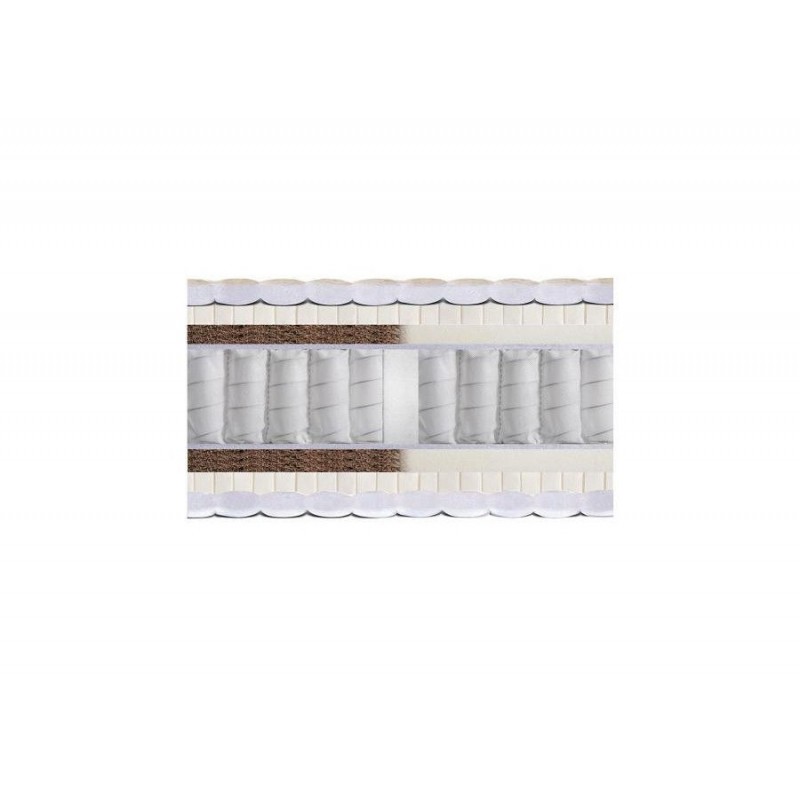 В основе обеих внутренних матрасов матраса Нобль находится блок независимых пружин «Pocket Spring». Каждая пружина такого блока помещена в карман из спанбонда, карманы сшиты между собой, а пружины не соединены, что позволяет им независимо друг от друга прогибаться под нагрузкой, благодаря чему формируется более четкий ортопедический эффект.