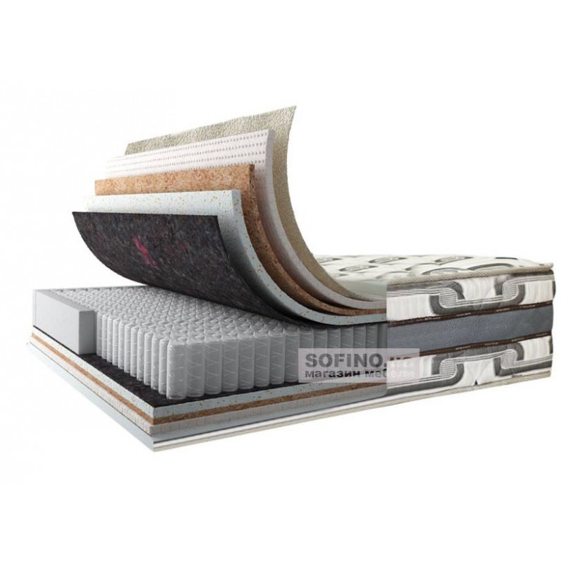 В качестве наполнителя матраса используется экологически чистый наполнитель - латекс. Материал изготавливается посредством вспенивания сока дерева гевеи. Эластичный наполнитель имеет структуру в виде ячеек. За счет этого обеспечивается воздухопроницаемость, создается необходимый микроклимат и регулируется влажность и температура матраса. Эластичность латекса позволяет обеспечить правильное положение позвоночника. В изделии используется натуральная кокосовая койра. Волокна из орехов кокоса скреплены с помощью латекса. 100% природный материал имеет бактерицидные, гипоаллергенные и антибактериальные свойства. Вентиляционные качества койры способствуют циркуляции воздуха. Ортопедический эффект образуется за счет высокой степени жесткости материала. Ортопедическая пена Perfect Foam достаточно эластичная. Благодаря наличию такого наполнителя равномерно распределяется давление на поверхность матраса. Пена добавляет матраса необходимую упругость. Пористая структура пены позволяет воздуху циркулировать внутри матраса. Еврокаркас располагается строго по периметру внутри матраса, создавая правильную форму боковой части. Выполнен он из пенополиуретана - синтетического упругого материала. Каркас дополнительно повышает жесткость и упругость краев и защищает его от проседания и деформации. Для достижения эффекта «зима-лето» используется два вида наполнения с разных сторон изделия. С одной из сторон используется шерсть - ее волокна имеют извилистую структуру и отлично сохраняют тепло в зимнюю пору. С другой - хлопок, который отлично пропускает воздух и влагу, обеспечивая отличную терморегуляцию.