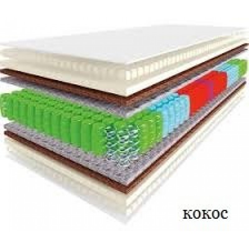 Для достижения эффекта «зима-лето» используется два вида наполнения с разных сторон изделия. С одной из сторон используется шерсть - ее волокна имеют извилистую структуру и отлично сохраняют тепло в зимнюю пору. С другой - хлопок, который отлично пропускает воздух и влагу, обеспечивая отличную терморегуляцию. Еврокаркас располагается строго по периметру внутри матраса, создавая правильную форму боковой части. Выполнен он из пенополиуретана - синтетического упругого материала. Каркас дополнительно повышает жесткость и упругость краев и защищает его от проседания и деформации. В матрасе присутствует экологически чистое термоволокно. Комбинированный материал состоит из шерсти, синтетических волокон и хлопка. Плотное термоволокно обеспечивает защиту внутреннего наполнения матраса от воздействия пружин. За счет этого продлевается срок эксплуатации матраса. В изделии используется натуральная кокосовая койра. Волокна из орехов кокоса скреплены с помощью латекса. 100% природный материал имеет бактерицидные, гипоаллергенные и антибактериальные свойства. Вентиляционные качества койры способствуют циркуляции воздуха. Ортопедический эффект образуется за счет высокой степени жесткости материала. В качестве наполнителя матраса используется экологически чистый наполнитель - латекс. Материал изготавливается посредством вспенивания сока дерева гевеи. Эластичный наполнитель имеет структуру в виде ячеек. За счет этого обеспечивается воздухопроницаемость, создается необходимый микроклимат и регулируется влажность и температура матраса. Эластичность латекса позволяет обеспечить правильное положение позвоночника.